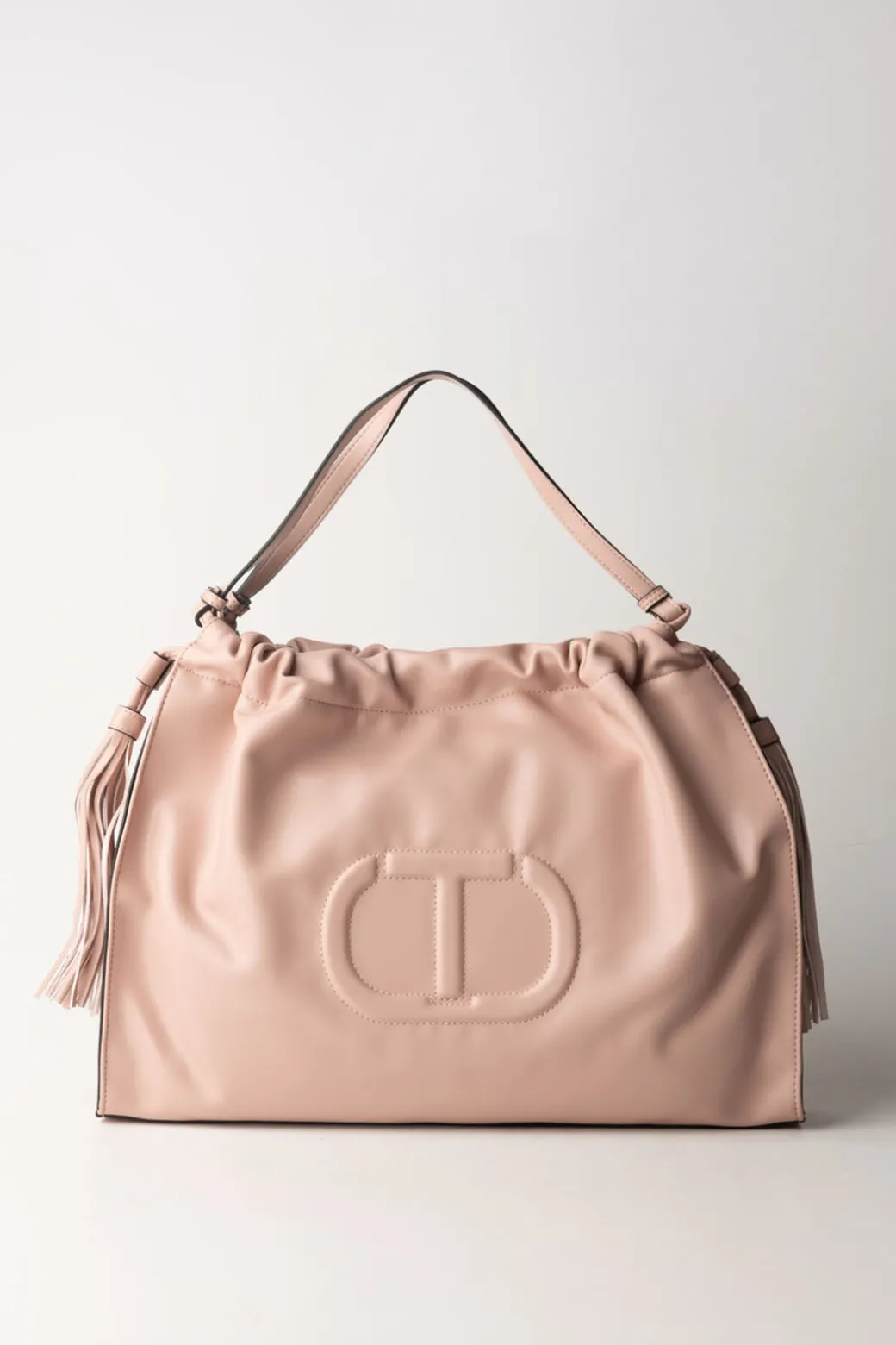 Allure boho per una borsa che ti accompagnerà con stile per tutte le tue avventure quotidiane: super capiente hobo Twinset caratterizzata da maxi logo e un’originale chiusura a coulisse con abbondanti nappe ai lati. Un accessorio che si farà notare e non solo per la sua dimensione: il suo designo morbido e stiloso sono certamente un modo per non passare inosservate.