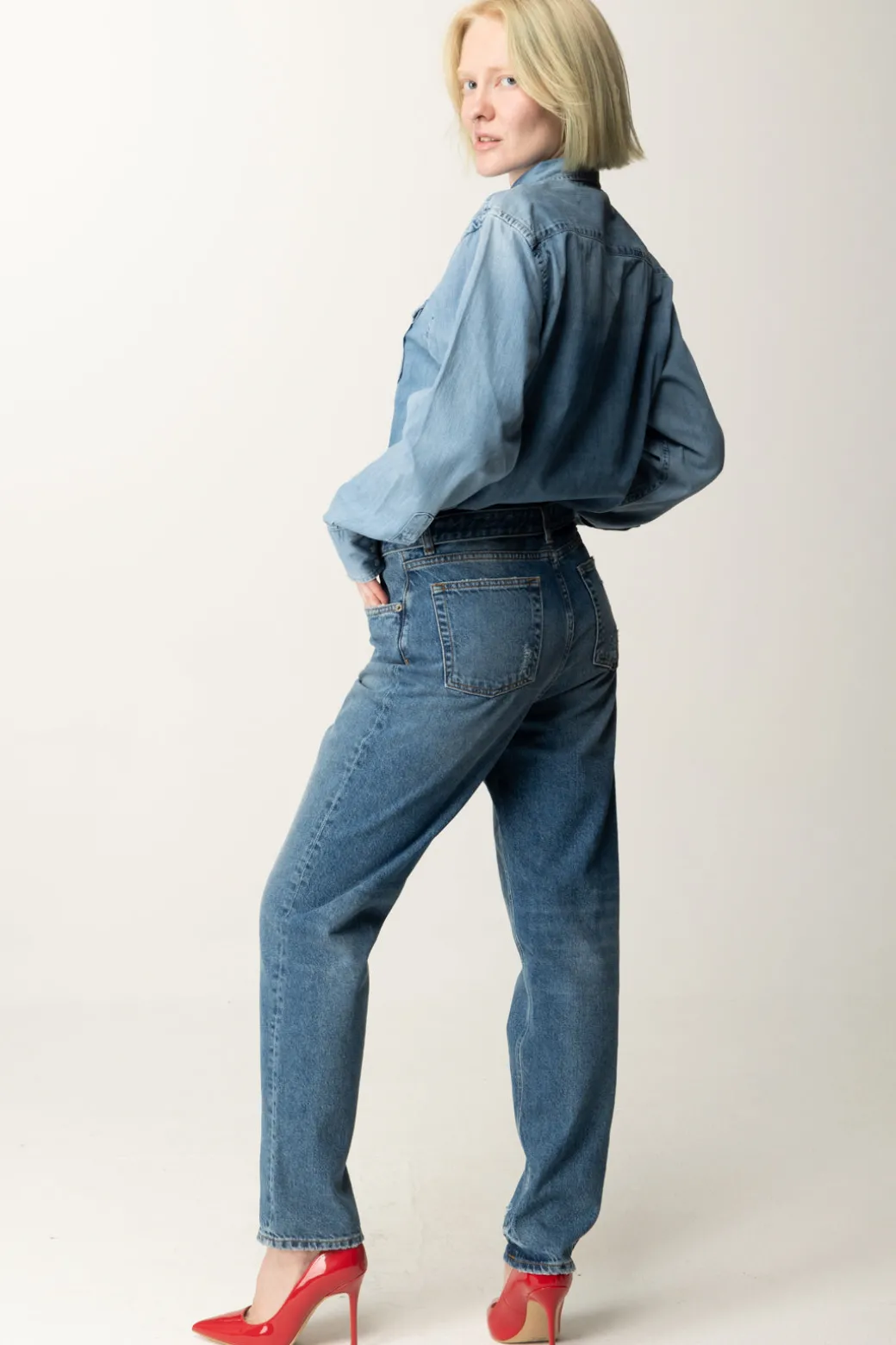 Un tocco di classe al tuo guardaroba casual questi jeans a vita alta Twinset. Realizzati in cotone stretch di alta qualità, questi jeans offrono una vestibilità confortevole e uno stile versatile. Caratterizzati da un design cinque tasche, includono dettagli raffinati come una cintura decorativa con fibbia dorata e una chiusura con zip e bottone logato. La linea ampia dona un look moderno, mentre le leggere abrasioni aggiungono un effetto vissuto e di tendenza. Perfetti da abbinare a décolleté o sneakers per un outfit casual-chic.