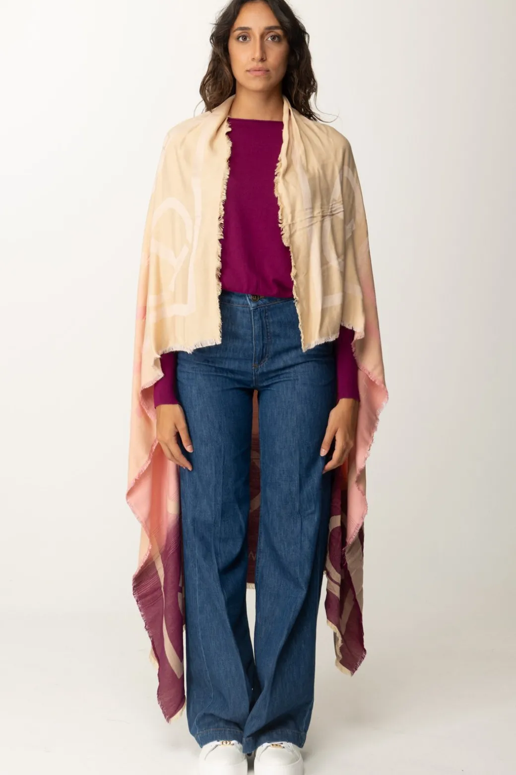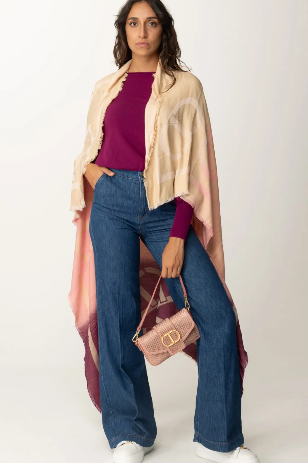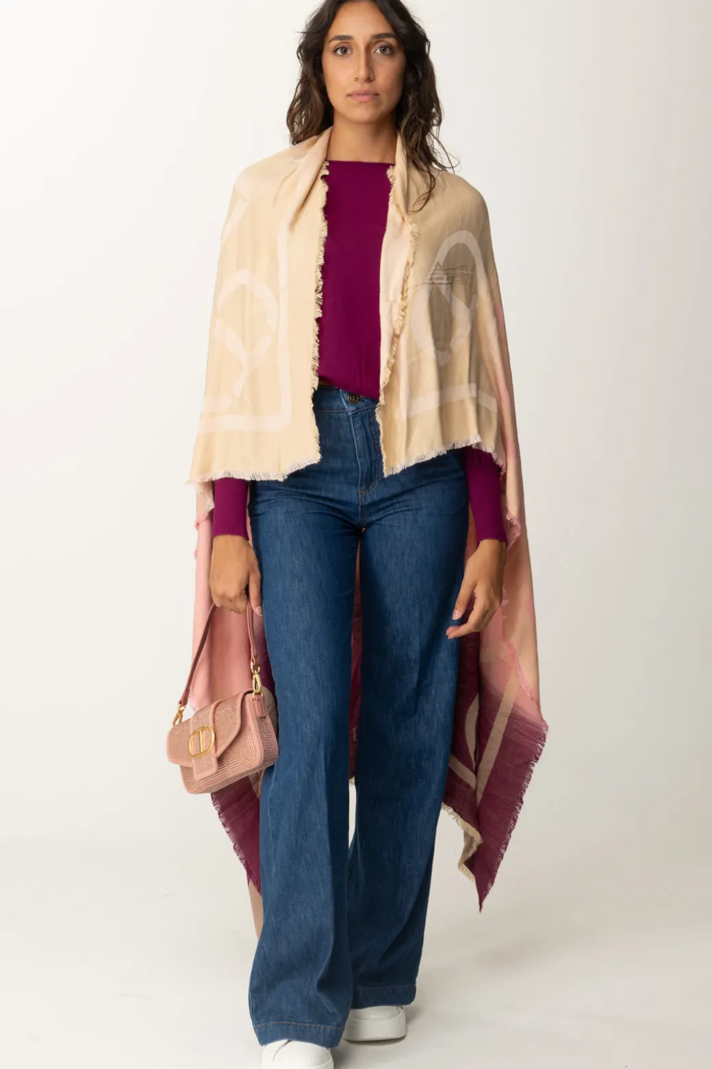 Un accessorio must-have di stagione: la Kefia Twinset è caratterizzata da una stampa con colori a contrasto e un effetto sfumato, il logo Oval T all-over fa da protagonista e viene completata dal bordo sfrangiato. Perfetta per aggiungere un tocco di colore a un cappotto invernale neutro.