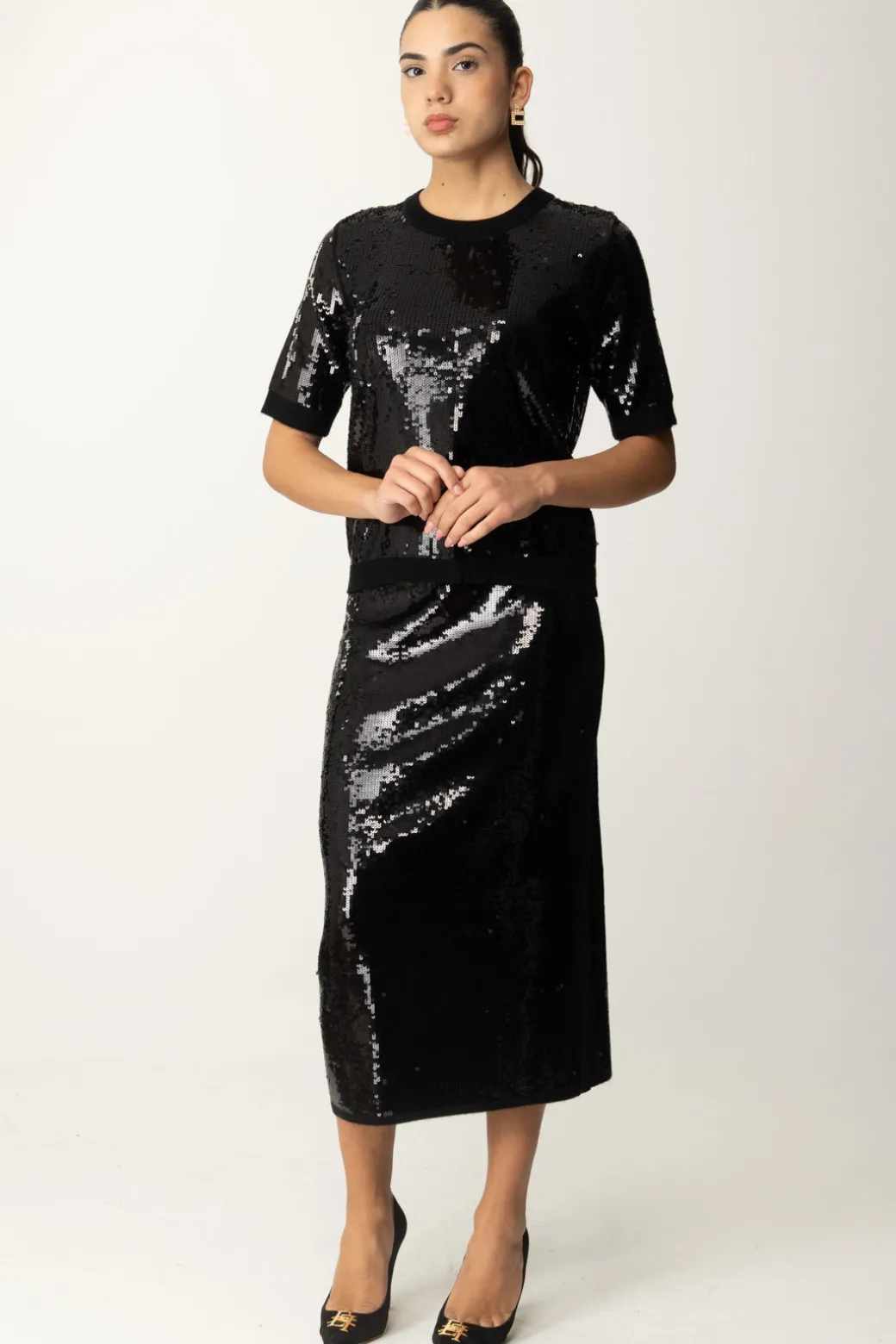 NB: I capi ricamati presentano inevitabili perdite di paillettes e/o perline