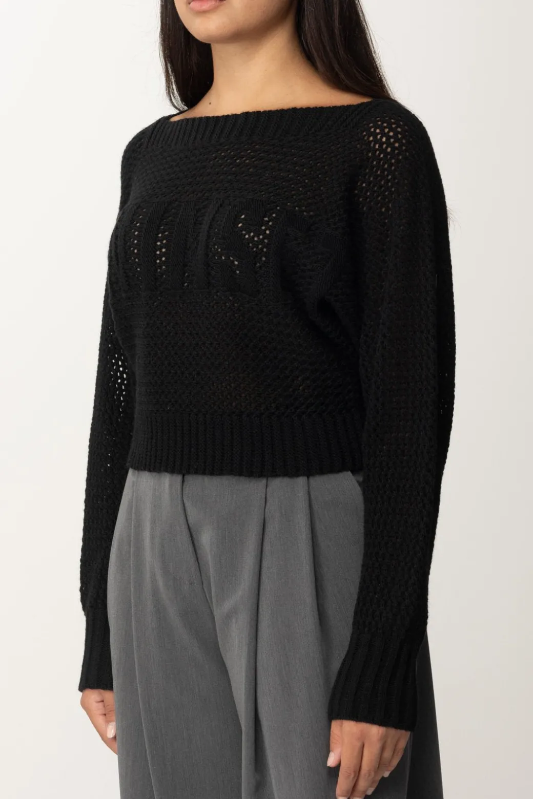 Allure urban e stile a livelli altissimi: questa maglia Twinset in misto lana è un twist per ogni outfit! Lavorazione traforata con logo lettering sul petto, abbinala a denim e joggers per un look casual, ma anche a maxi gonne e pantaloni gessati per un risultato glamour e contemporaneo. Scollo a barca e orli e polsini a costine.