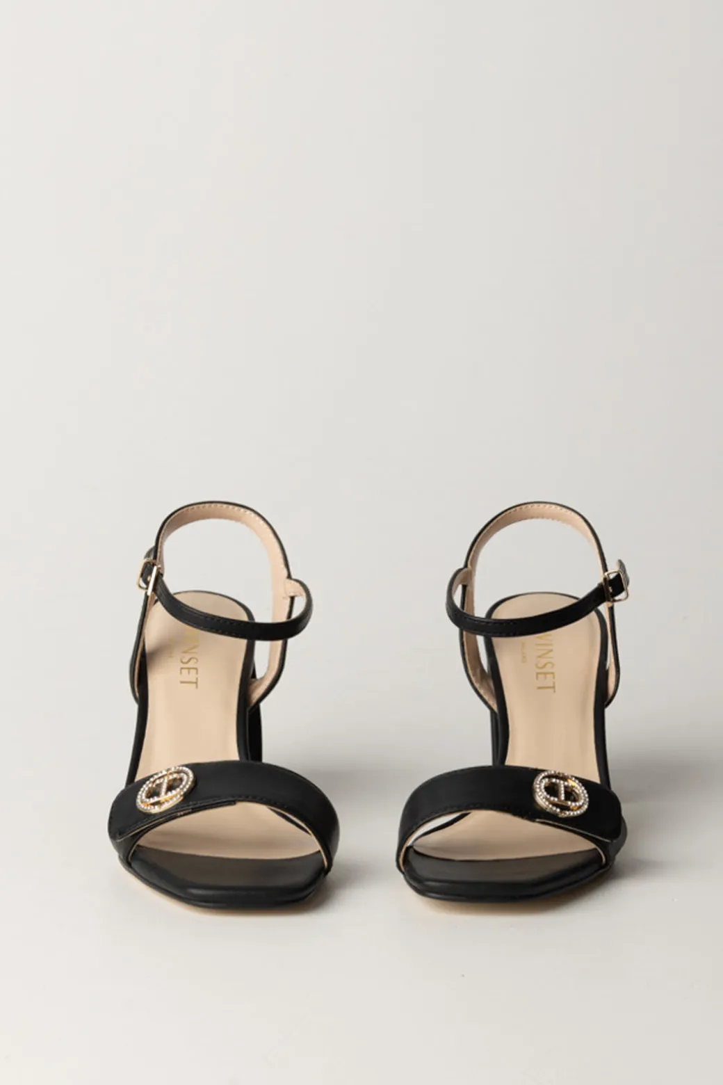 Sandali Twinset dal design classico, arricchiti dalla presenza del logo Oval T versione gioiello sulla fascetta frontale e completati da un comodo tacco largo con altezza media. Sono delle scarpe passe-par-tout: vanno bene di giorno per i tuoi outfit formali (ma non troppo) così come con look più casual a cui aggiunngere una nota luxury e qualche centimetro di altezza. La certezza più importante? Starai ben comoda con un tacco così!