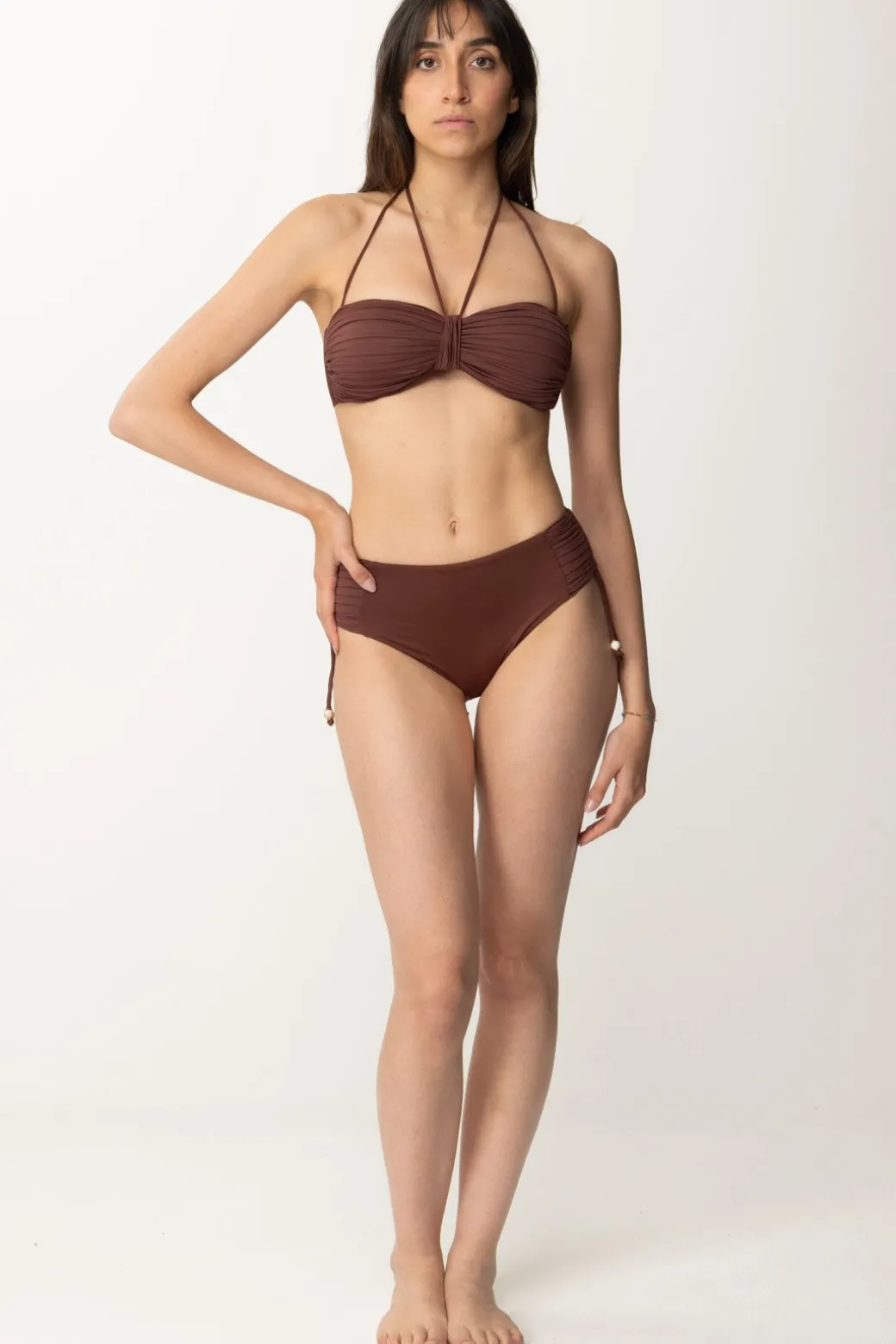 Top Twinset da combinare con il suo bottom o altri esclusivi pezzi beachwaer del tuo guardaroba estivo. La struttura a fascia enfatizza il volume del seno con la sua arricciatura, insieme all’imbottitura a coppa estraibile. Doppie bretelle da allacciare al collo per un look mare non banale nei dettagli.