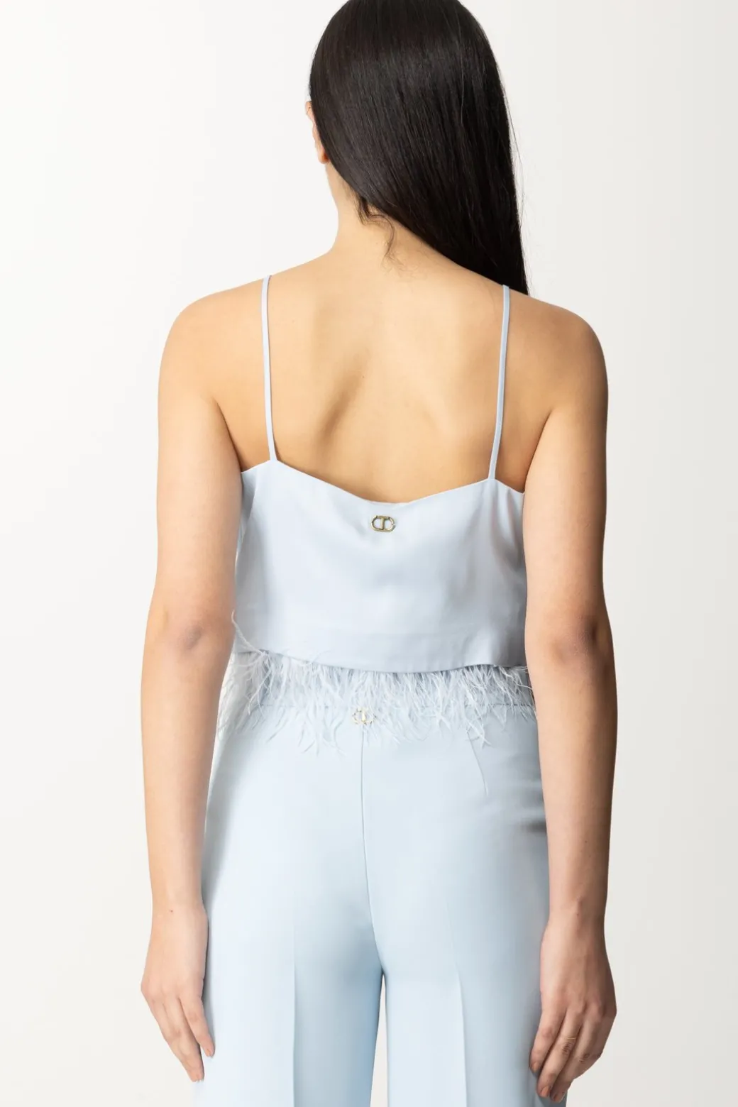 Le piume non stancano mai: arricchiscono con delicatezza e aggiungono un tocco di frivolezza agli outfit più rigorosi. Così puoi darti mille possibilità con un top Twinset in raso di viscosa così: oltre che il taglio femminile, con bretelle sottili e che ben si adagia sul seno, vivacizza i tuoi look con la sua fila di piume in tinta al punto vita, e amerai indossarlo tanto per outfit casual quanto per occasioni speciali.